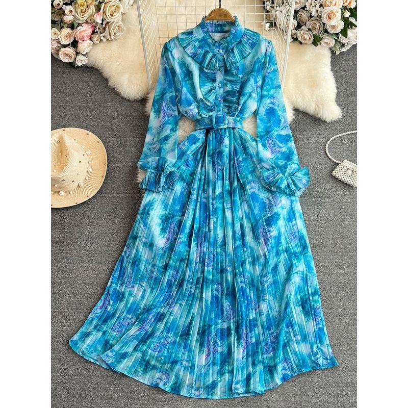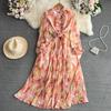 Retro Graceful Stand Collar Speaker Long Sleeves Elegance Dress