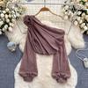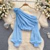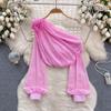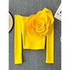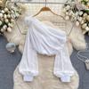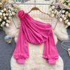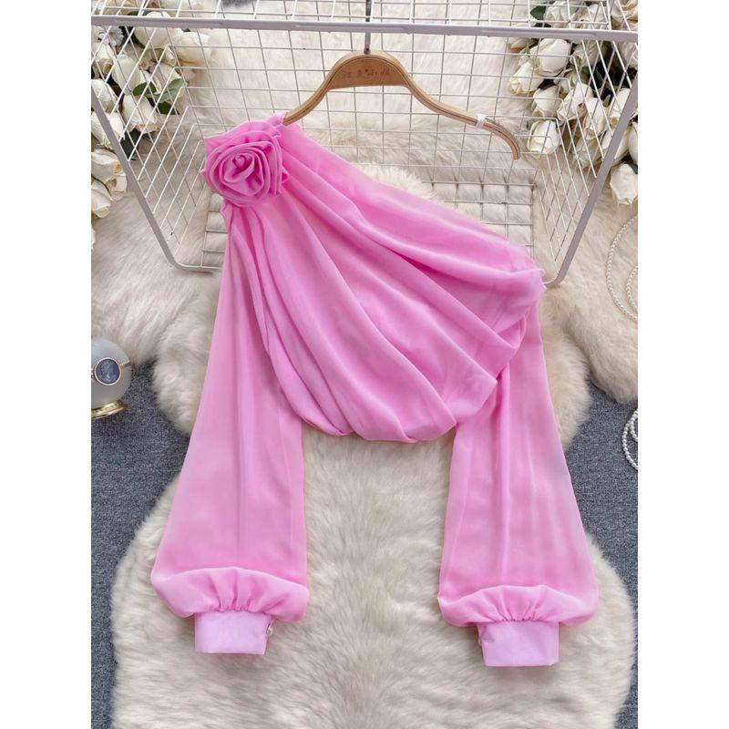 Shirt for Women 2024 New Design Sense Three-Dimensional Flower Diagonal Collar off-the-Shoulder Puff Sleeves French Tops Women's Spring Fashion