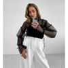 European and American New Loose Sexy Perspective Mesh Long sleeve Shirts Top Sexy Perspective Shirt