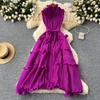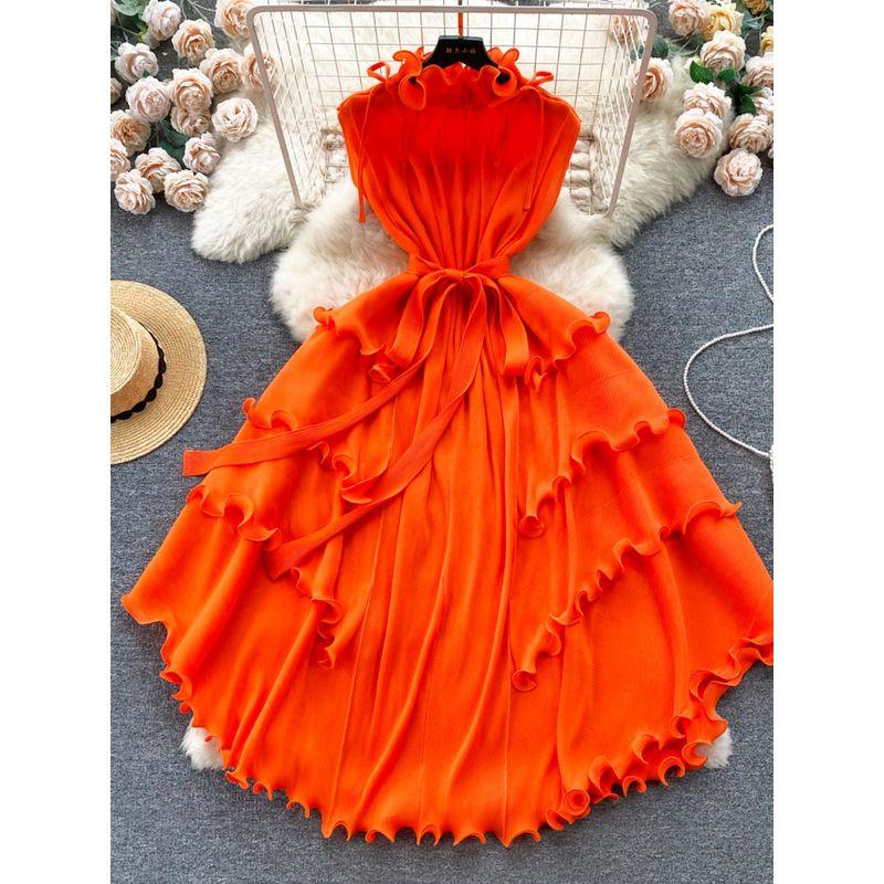 Wooden Ear Silm Long Pleated Chiffon Dress