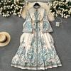 Spring New Arrival French Style Vintage Court Style Print Dress Women's Fancy Loose Fitted Waist Flare-Sleeve Dress