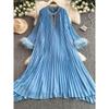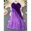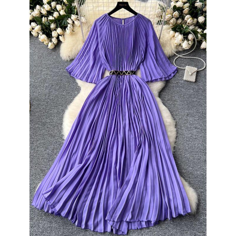 Summer Dress New Arrival Fashion Special Interest Light Luxury Elegant Retro Pleated Dress Waist-Tight Slim Looking Elegant Flare Sleeve Dress