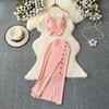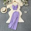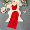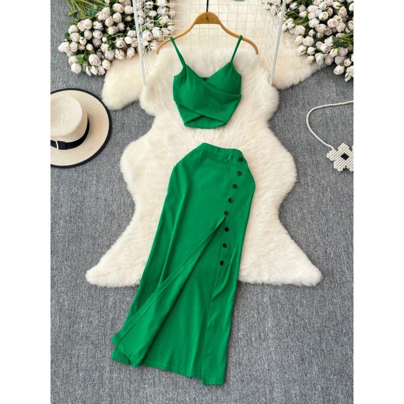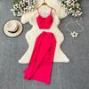 Fashion Suit Women's Summer Sexy Padded Strap Vest Two-Piece Set High Waist Slimming Slit Sheath Skirt