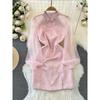 Ruched K-style Lantern Stand-up Collar Cinched Dress Sequin