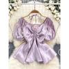 White Pure Desire Temperament off-Shoulder Bubble Long sleeve Sun Protection Chiffon Shirt Women Summer Beautiful Frill Lace-up Top