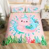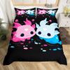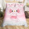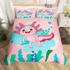 Cartoon Axolotl Bettbezug Queen Size, Sonnenblumen Bettwäscheset Niedliches Tier Botanisch Bettdeckenbezug Aquarell Gelb Steppdeckenbezug