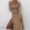 New Russian Irregular Collar Long sleeve Split Dress Ircollar Regular Slit Dress