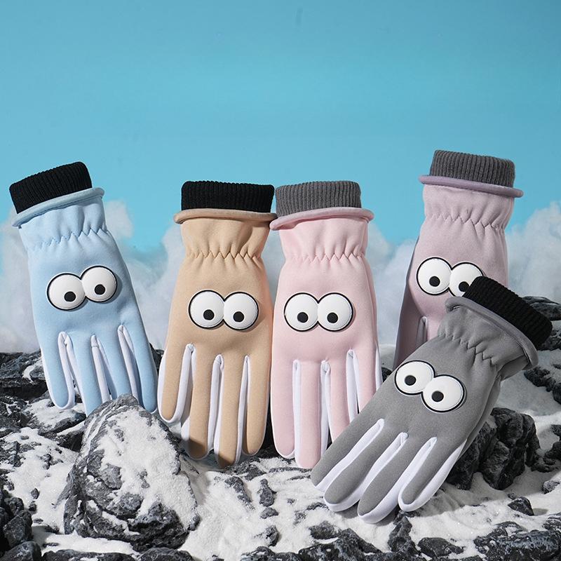 Herbst- und Winter Outdoor Kälteschutz und Wärme Fleece Schneespiel Anti-Rutsch Reiten Cartoon Großauge Winddichte Handschuhe