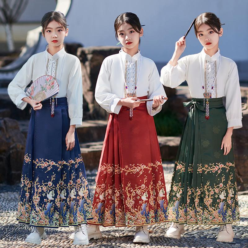 Hanfu für Kinder, Hanfu für Mädchen, chinesischer Stil, verbesserter Anzug mit Pferderock, Frühling, Sommer und Herbst, antiker Stil, Hanfu aus der Ming-Dynastie