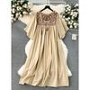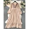 Spring Clothing Ethnic Style Retro Embroidered Flared Sleeve Dress