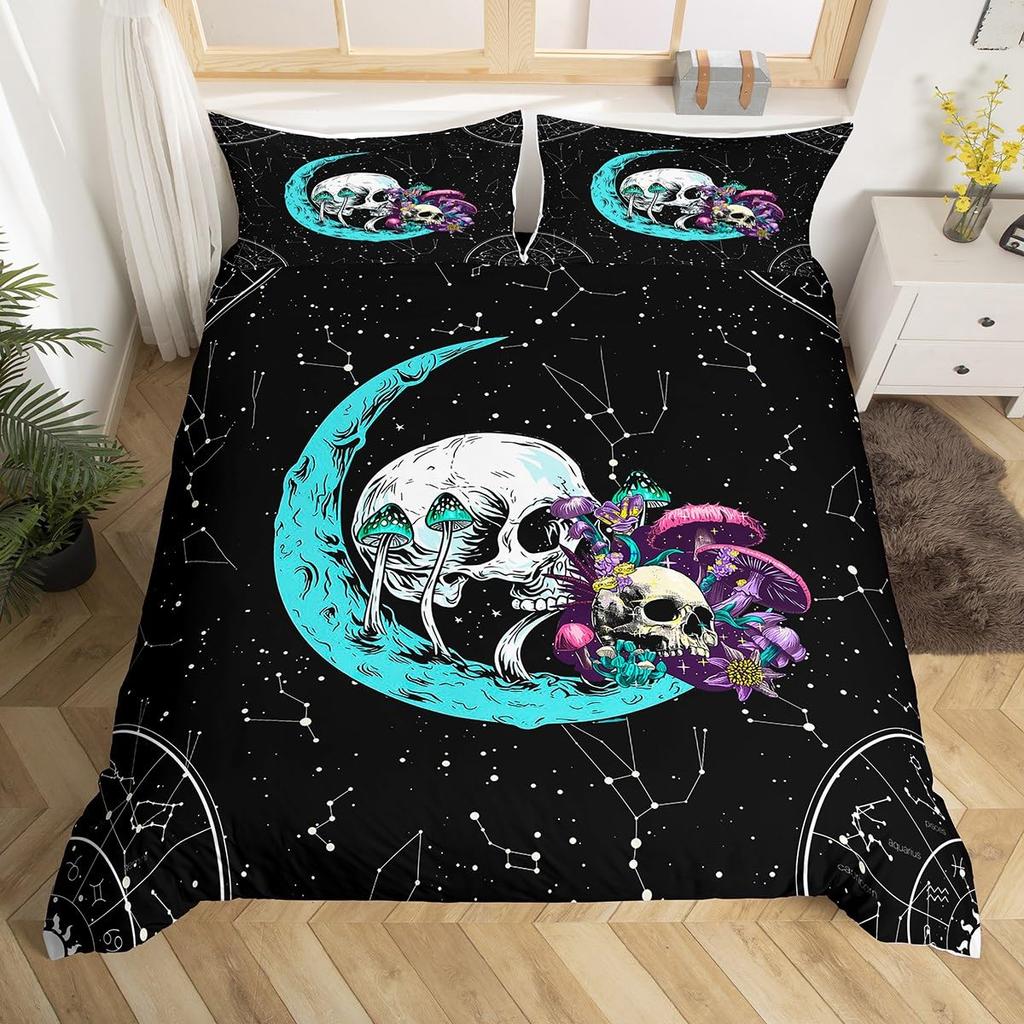 Gothic Schädel Bettwäsche Set King Queen Böhmisch Skelett Sonne Bettbezug Trippy Pilz Bettdeckenbezug Blume Pflanze Steppdeckenbezug