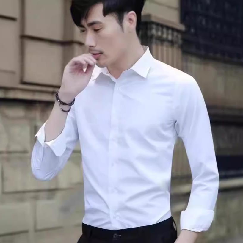 Herren Langarm Businesshemd, Koreanischer Stil, Bügelfrei, Weiß/Schwarz, Sommer Arbeitskleidung