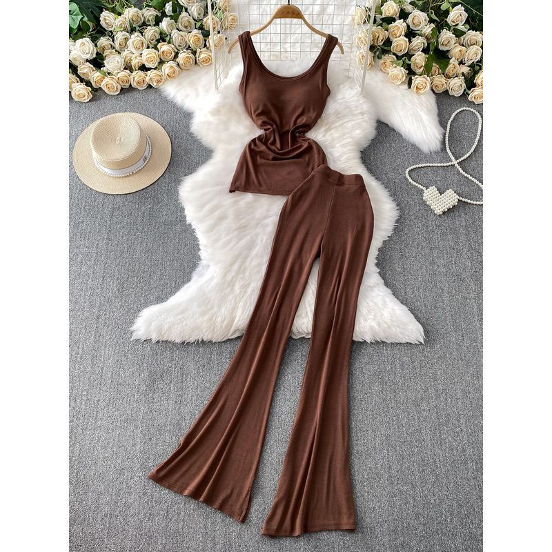 Gyaru Style Sleeveless Cami with Chest Padding Design Sense Pleat Waist Hugging Top + High Waist Slimming Trumpet pants Two-piece Set
