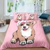 Kinder Corgi Hund Bettwäscheset King Queen Größe Niedlicher Welpe Bettbezugset Cartoon Haustier Tier Bettdeckenbezug Mikrofaser Steppdeckenbezug