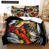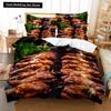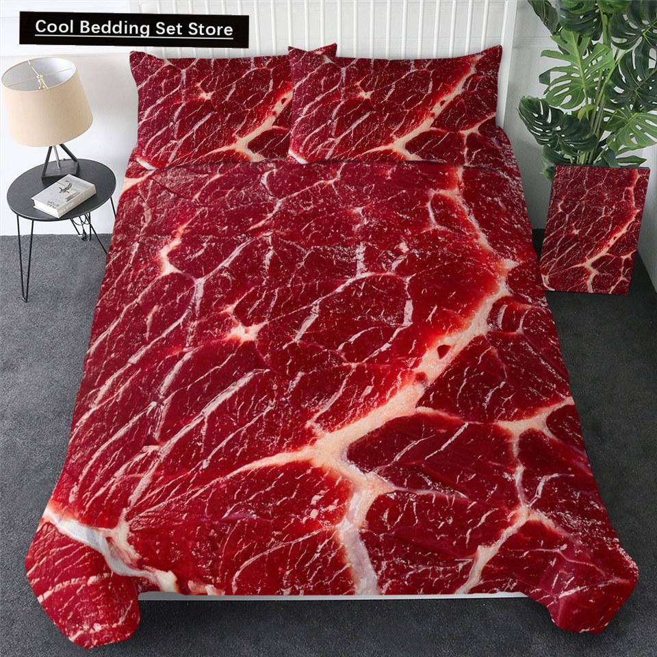 Essen Rindfleisch Bettwäsche Set 3D Frisches Fleisch Bettbezug King/Queen Größe Köstliche Meeresfrüchte Sashimi Hähnchenschenkel Steak Realistischer Bettdeckenbezug