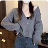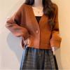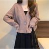 New Early Autumn Short Knitted Cardigan Loose Inner Top Long Sleeve V-Neck Sweater Jacket Women's