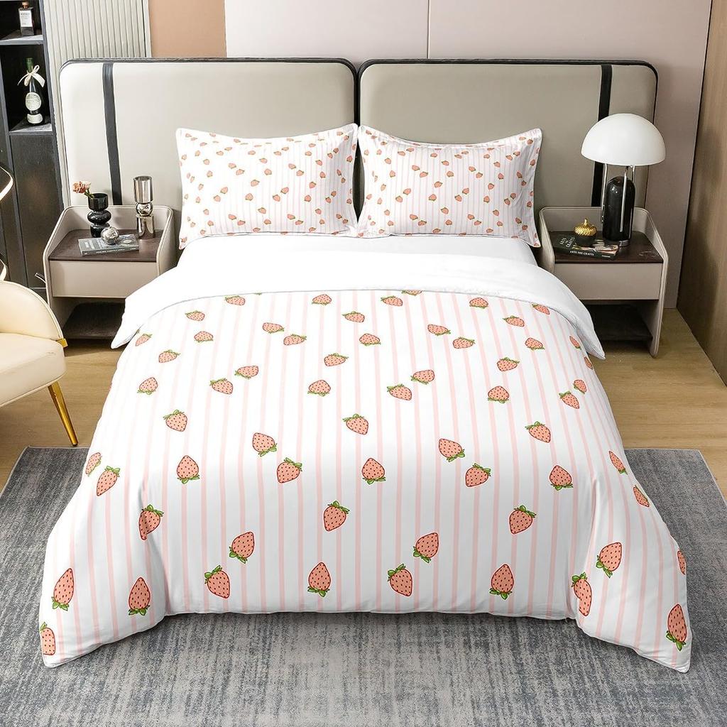 Frucht Erdbeere Bettbezug-Set, Rotes Süße Erdbeere Bettwäsche-Set für Kinder Jungen Mädchen, Kinder Bettdeckenbezug-Set mit Reißverschluss