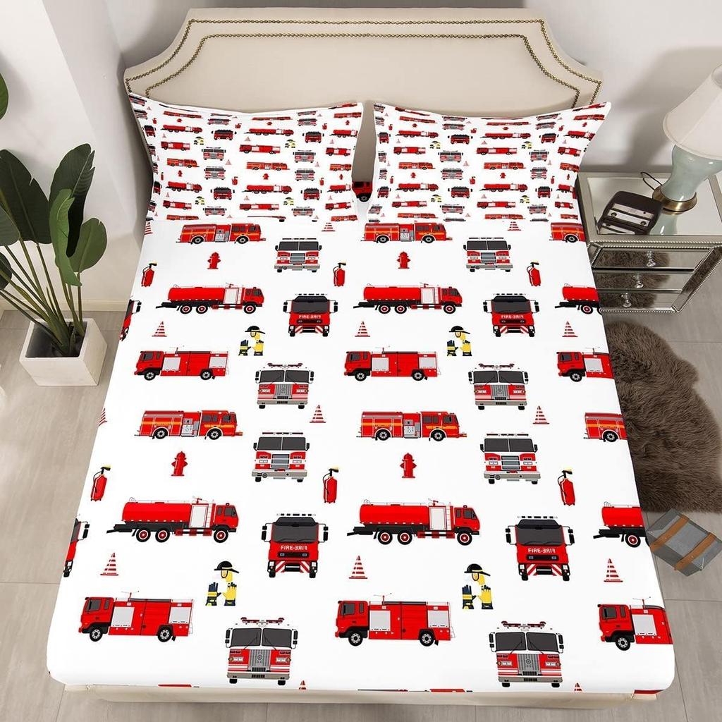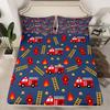 Feuerwehrauto Spannbettlaken Cartoon Auto Bettwäscheset für Jungen, Feuerwehrmann Bettlaken Set Feuerwehrmann Auto Fahrzeug Feuerwehrwagen Bettdecke