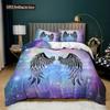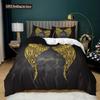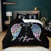 Engelsflügel Bettbezug Set Schwarzer Hintergrund Leuchtend Orange Flügel 3D Druck Bettdeckenbezug King Queen Größe Polyester Bettwäsche Set