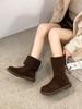 Beliebte reine Leder Zwei-Wege-Stiefel mit Flansch, flachem Absatz, mittelhoch, Damen Winter Fell Rindsleder Samt Schneestiefel, warme Baumwollstiefel