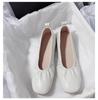 Riesig weich und bequem~ Leder Ballerinas Koreanische Version schlicht und vielseitig runde Spitze Doudou Temperament flacher Ausschnitt Einzelne Schuhe Slipper