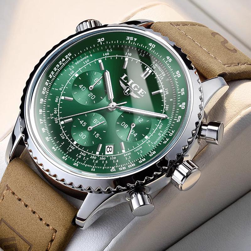 🧡Materialien: Hochwertiger Edelstahl mit IP-galvanisiertem Gehäuse, das niemals verblasst; Erz hochhärtendes Glas, das nicht leicht zerkratzt und abgenutzt wird; Lederarmband, das weich, schweißfest und angenehm zu tragen ist.