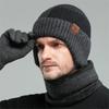 WTEMPO Solid Color Thick Fleece Hat & Scarf & Gloves Set Men Winter Woolen Cold-proof Windproof Knitted Hat Set