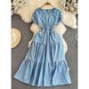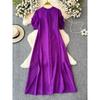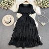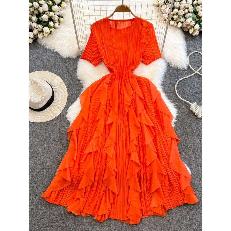 Sanzhai Ruched Fairy round Neck A- line Ruffled Long Dress