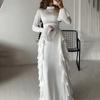 Fashion Wind New Arrival Waist-Tight Half Turtleneck Dress Half High Neck Flared Sleeve Dress