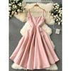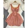 Summer Korean New Nightclub Sexy Tube Top Suspender Skirt Mesh Patchwork Cut Out Lace-up Waist-Controlled A- line Dress
