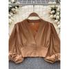 Fashion Lantern Long Sleeve High Waist Exposed Navel Silm Pullover