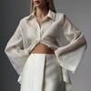 European and American Fashion New Style Sexy See-through Deep V Tencel Yarn Waist Trimming Shirt Sexy Special Shirt