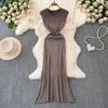 2024 Summer New Arrival Temperament Crew Neck Sleeveless Stretch Waist Hip-Lifting Knitting Dress Mermaid Dress Sheath Dress for Women