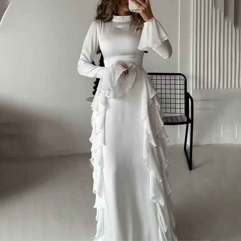 Western Style New Fashion Temperament Lace Half-high Collar Bell Sleeve Dress Flared Sleeve Dress
