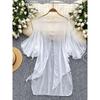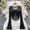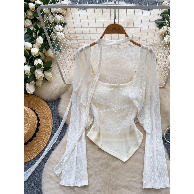 Atmosphere Sense Fairy Top 2025 New Design Sense Irregular Mesh Patchwork Cami + Long sleeve Outerwear