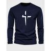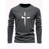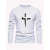 Herren lockere Passform Übergröße bequemes lässiges Sport-T-Shirt-Top mit Kreuzdruck Rundhalsausschnitt lange Ärmel