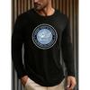 Herren locker sitzendes bequemes Sport- und Freizeit-Langarm-T-Shirt mit Bergkompass-Musterdruck und Rundhalsausschnitt