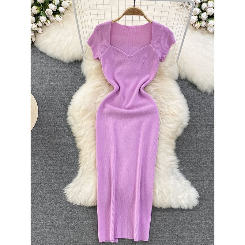 Summer K-style Square Collar off-Shoulder Knitting Dress
