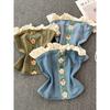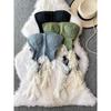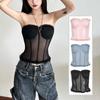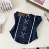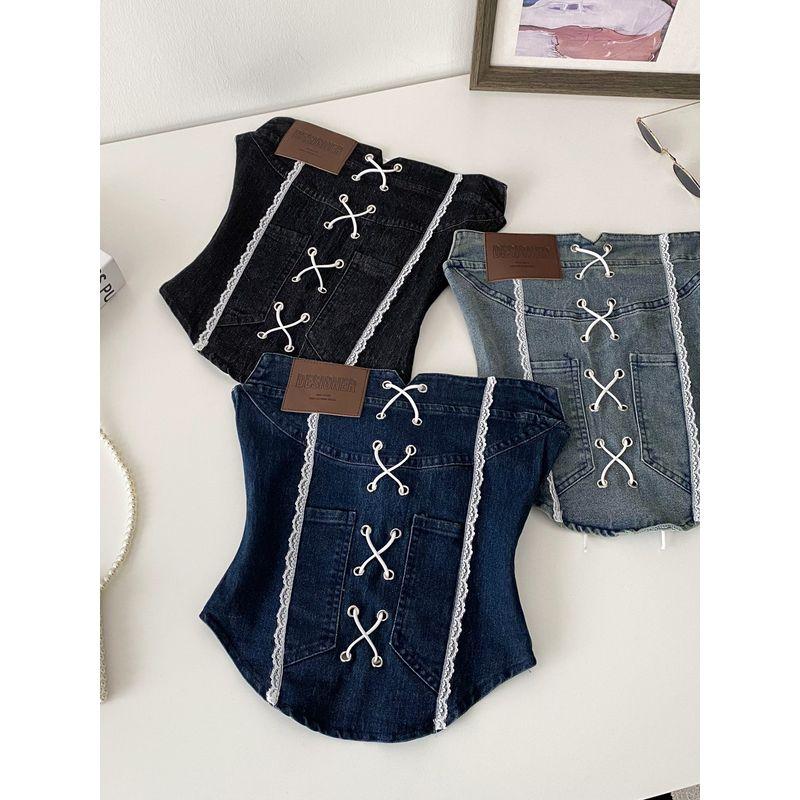 American vintage Gyaru Lace Stitching Denim Tube Top Women Summer Pure Want Bandage Waist Hugging Slim fit Sleeveless Vest