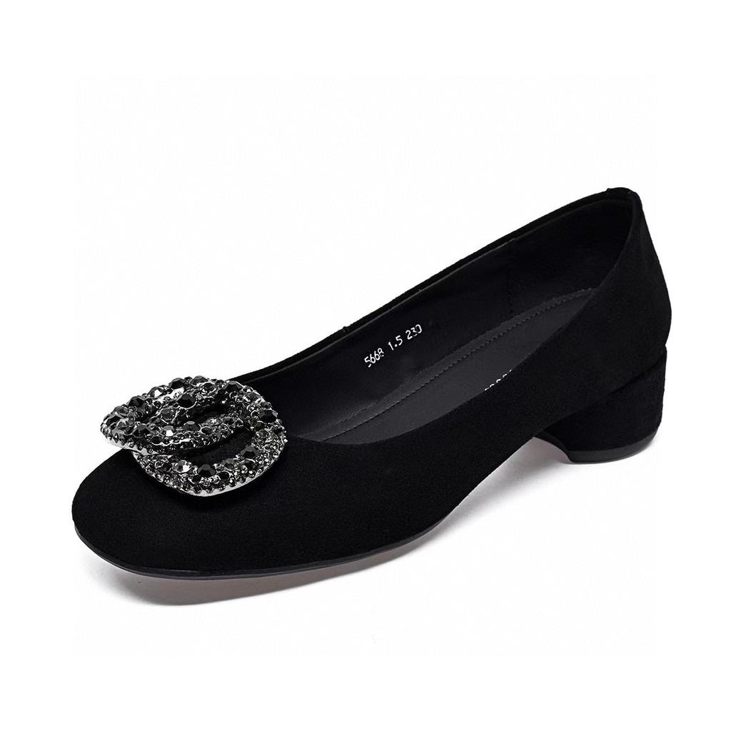 Flache Einzel-Schuhe Damen Frühling neu schlichtes Temperament schwarz Damen-Schuhe Strass ein Pedal niedrig-absatz Damen-Schuhe