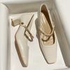New Spring and Autumn Soft Leather Soft Sole Comfortable Low Heel Round Head Fashion Thick Heel Bright Leather Shoes Women