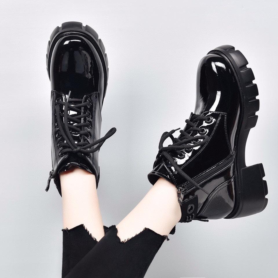 Lässige Martin-Stiefel mit dicker Sohle, Herbst und Winter neu, erste Schicht Kuhlackleder zum Schnüren, modische wasserdichte Lokomotivstiefel
