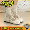 Frühling und Sommer neue Kreuz mit Schleife Muscheldekoration eckige Zehen Mary Jane Absätze modische vielseitige Einzelschuhe