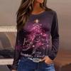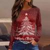 Damenmode Lässig Schlitzsaum Rundhals Langarm Locker Weihnachten Bedrucktes T-Shirt Damen Oberteil