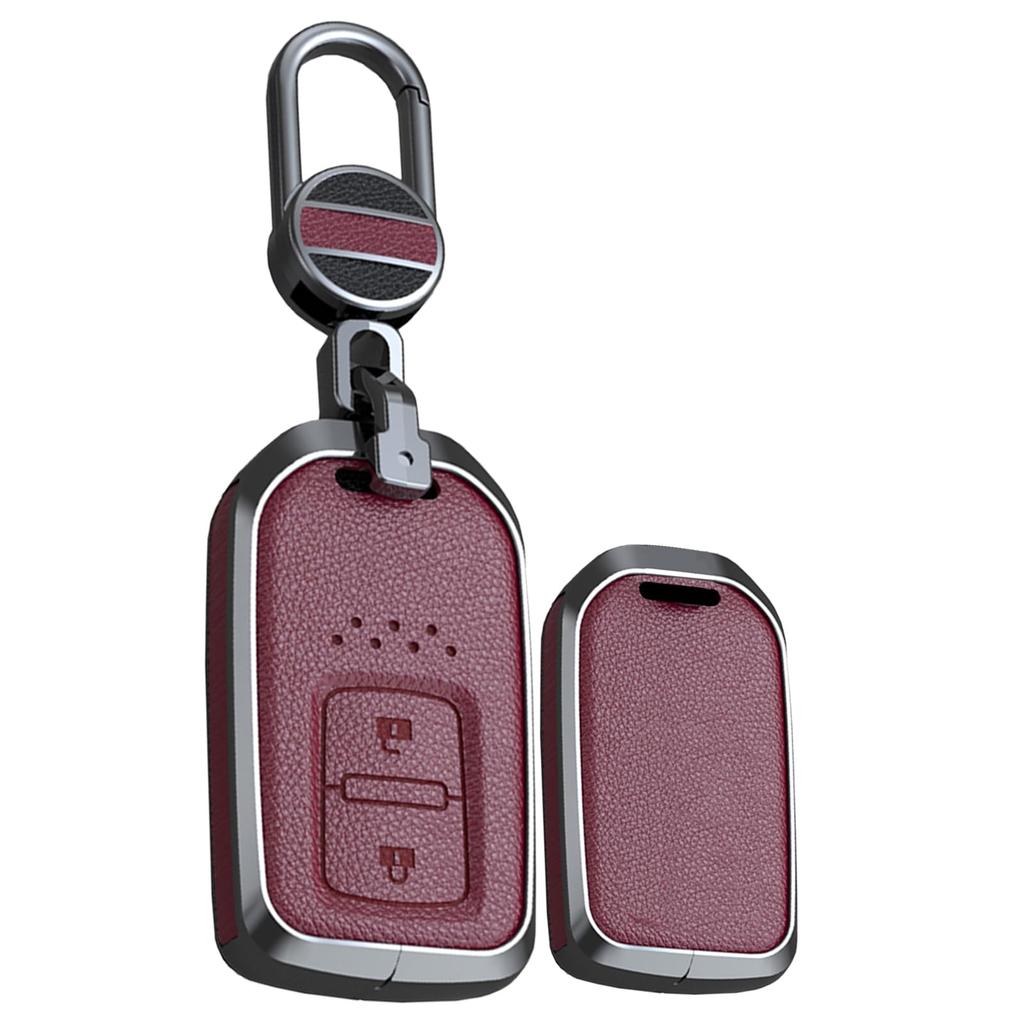 【Hochwertiges Material】Dieser Schlüsselanhänger ist aus Zinklegierung und Leder gefertigt, die Schlüsselringbefestigung ist sehr einfach und schnell.. Entworfen mit einem luxuriösen Design, wird dieses Etui Ihnen den Modesinn und den Geschmack der Leute zeigen.. Das Material verliert nicht seine Form, sodass Sie Ihre Autoschlüssel mit Zuversicht benutzen.. Die Schlüsseltasche ist nicht nur langlebig und abriebfest, sondern auch staubdicht und sturzfest, um Ihren Smartkey in mehreren Winkeln zu schützen.