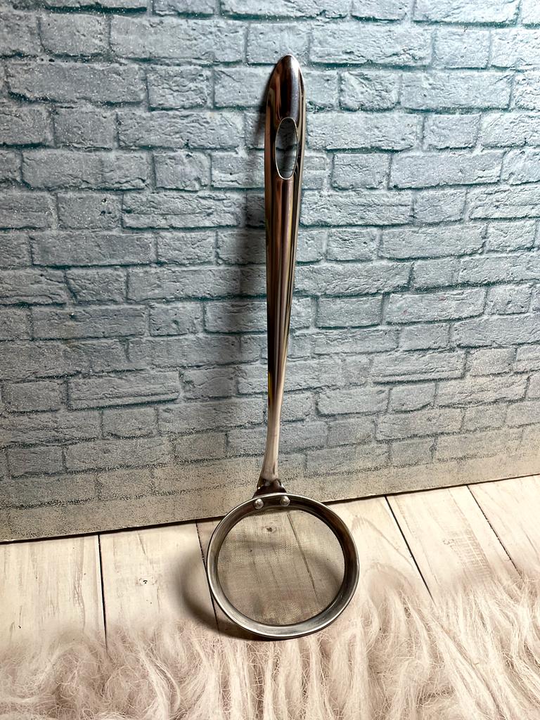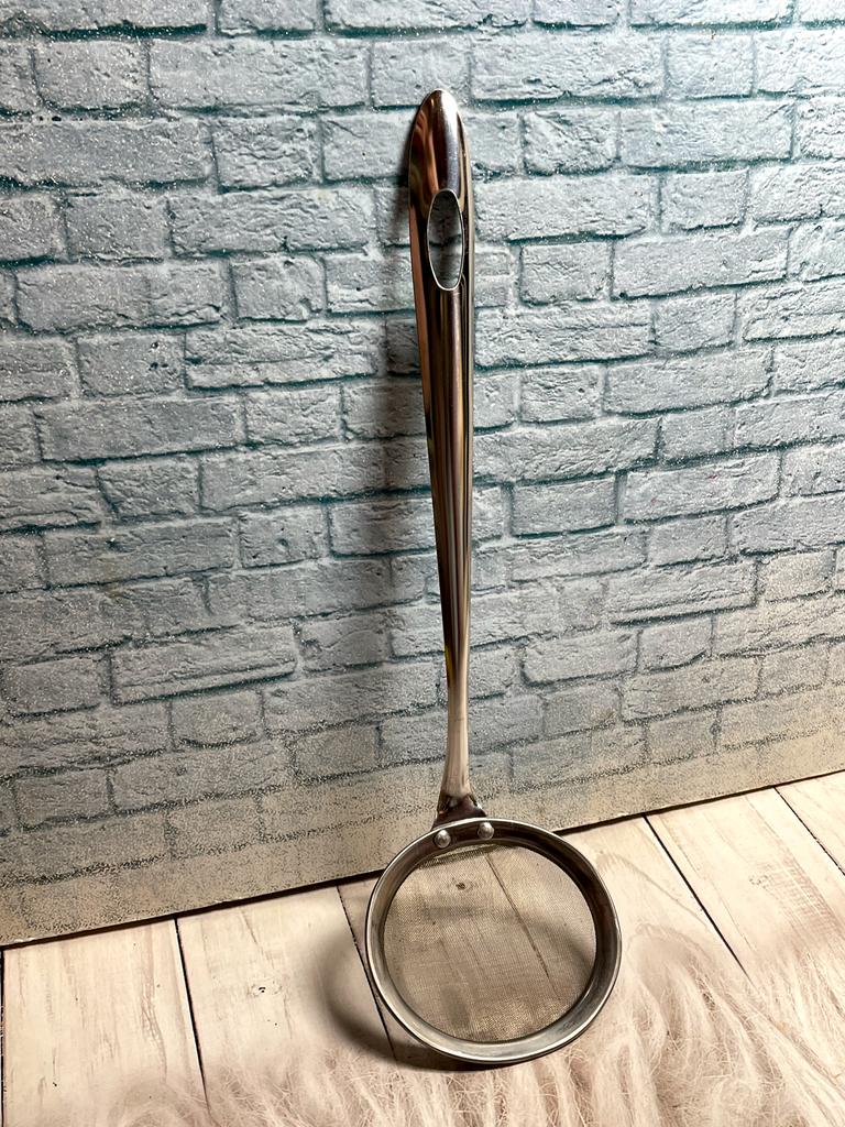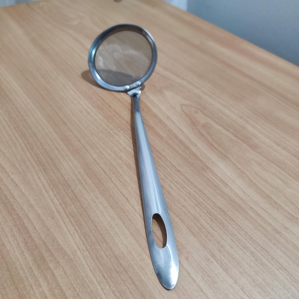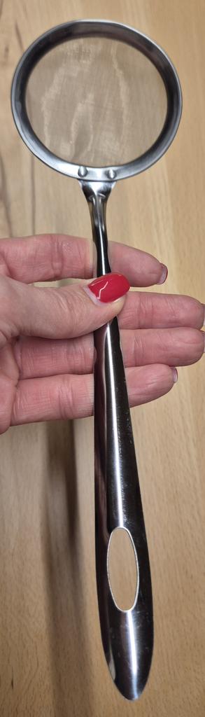 Ich habe diese Schöpfkelle aus Edelstahl für meine Küche gekauft – und ich bin wirklich zufrieden! Ihre Größe (26*7,5 cm) ist ausgezeichnet, der Griff ist lang und liegt gut in der Hand, und die glänzende und hochwertige Verarbeitung vermittelt Langlebigkeit.. Die effizienteste Verwendung für mich war beim Sieben von Mehl – das doppelte Sieben macht wirklich einen Unterschied, besonders wenn man mit feinen oder glutenfreien Mehlen arbeitet. Auch zum Verteilen von Puderzucker oder Kakao zum Dekorieren von Kuchen ist es perfekt.. Hohe Qualität, leicht zu reinigen, sieht gut aus – ein kleines, aber bedeutendes Upgrade für meine Küche. Sehr empfehlenswert!