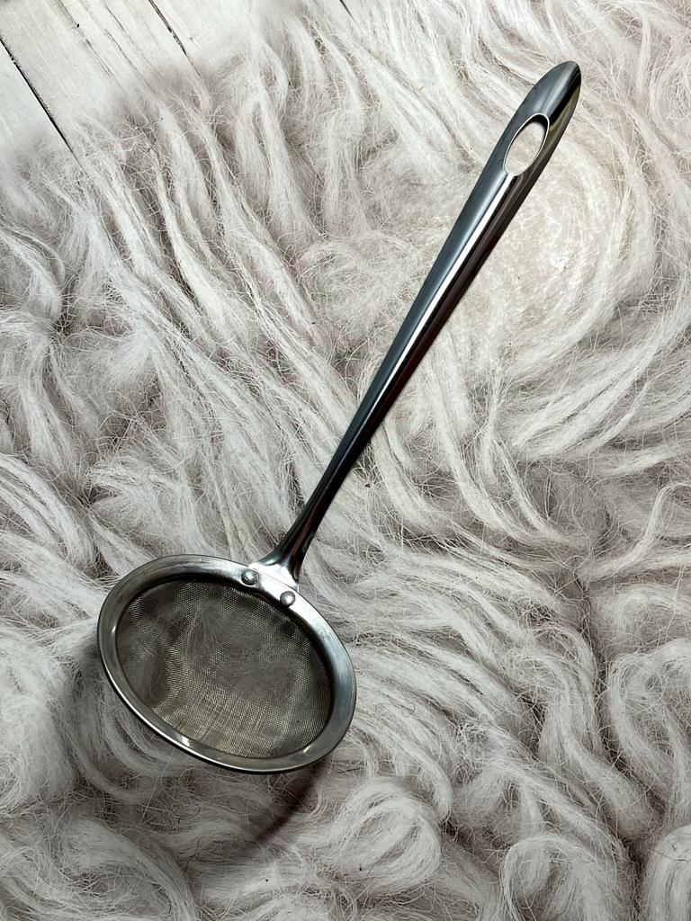 Der Schaumlöffel ist ideal zum Filtern von Öl, zum Abseihen von Brühe, zum Abschöpfen von Speisen aus heißem Öl und zum Abschäumen von Suppen und Saucen.. Der Sieblöffel ist aus Edelstahl gefertigt, robust, rost- und korrosionsbeständig, was seine lange Lebensdauer gewährleistet.. Der Schaumlöffel ist mit einem langen Griff ausgestattet, der einen bequemen und sicheren Halt bietet und Ihre Hände beim Kochen vor Hitze schützt.. Der Schaumlöffel ist mit einem langen Griff ausgestattet, der einen bequemen und sicheren Halt bietet und Ihre Hände beim Kochen vor Hitze schützt.. Das feine Sieb fängt effektiv kleine Speisepartikel auf und lässt Flüssigkeit abfließen, was es ideal für präzises Passieren und Abschöpfen macht.. Feinmaschiges Edelstahlsieb für Lebensmittel ist leicht zu reinigen und zu pflegen, was Ihnen Zeit und Mühe in der Küche spart..