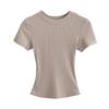 Damen Sommer Stretch Slim Fit Geripptes Crop Top - Rundhalsausschnitt, Kurzarm, Unifarben