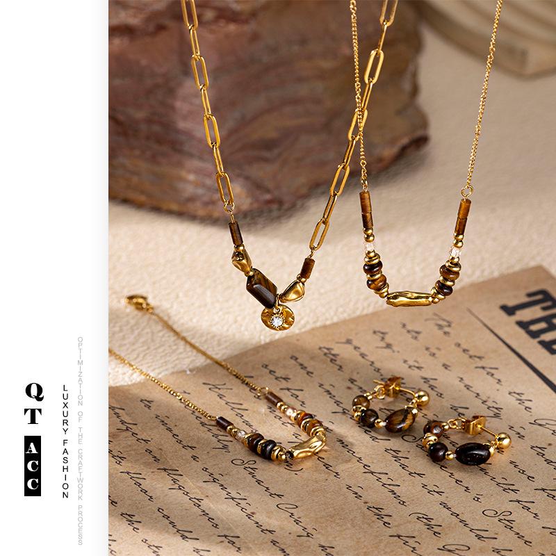 Meillard Nische Tigerauge 18k Titanstahl Halskette: Hochwertige vielseitige Pulloverkette für Damen