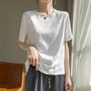 Damen Satin Rundhals Fünf-Ärmel Locker Geschnittenes Sommer T-Shirt